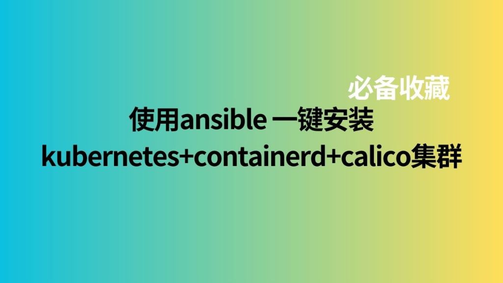 因为老电脑用久了,太慢了,近期买了macbook pro m … 继续阅读 使用 ansible 一键安装kubernetes+containerd+calico集群