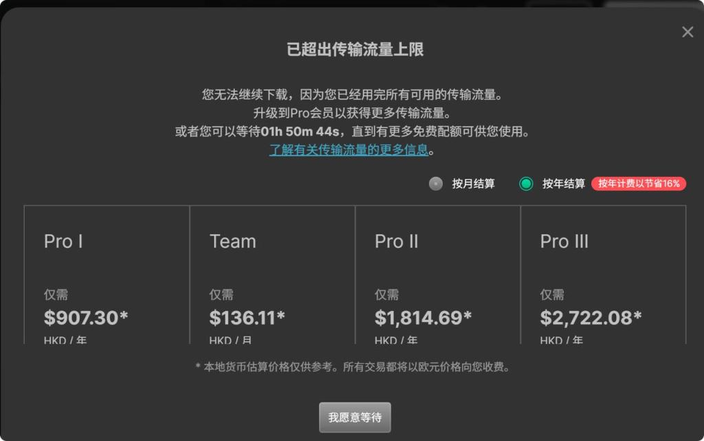 提示已超出传输流量上限,更换 vpn 节点后,刷新就可以打开了