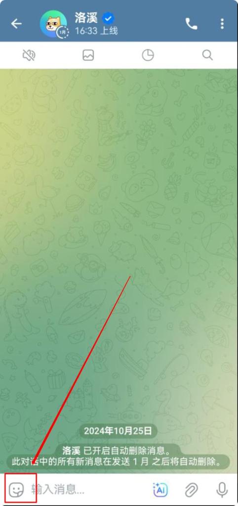 - 访问贴纸包面板:在任何聊天中打开贴纸面板,然后选择您创建的贴纸包。
