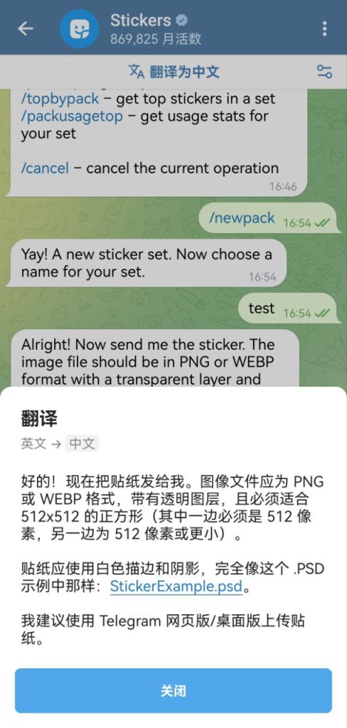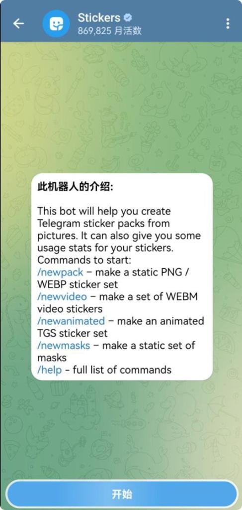 - 启动 @Stickers 机器人:打开 Telegram 并与 @Stickers 机器人开始对话。