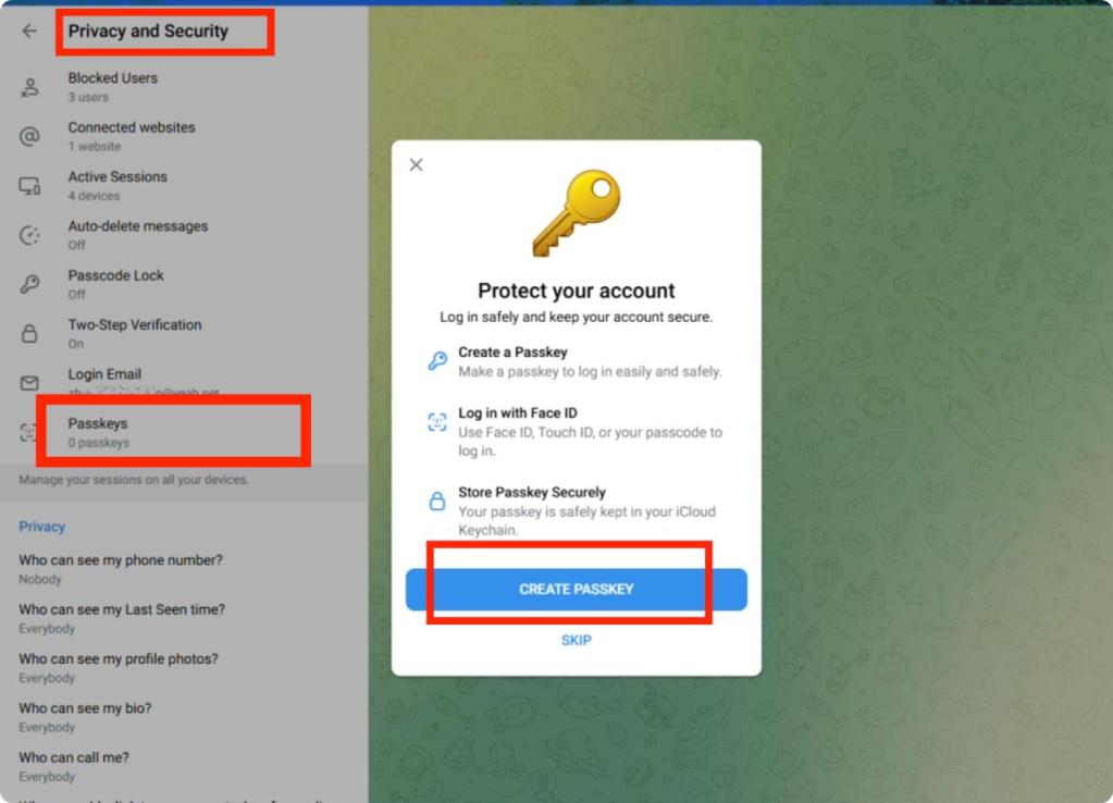 Telegram 通行密钥(Passkeys)开启方式