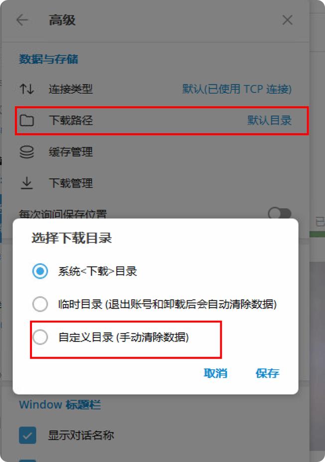 更改下载位置:如果您希望 Telegram Desktop 将文件保存到其他位置,可以在应用设置中进行更改。在 Telegram Desktop 中,依次点击设置 > 数据 > 下载文件夹,然后设置一个自定义文件夹用于保存下载文件。以后的下载文件将保存到您选择的新位置。