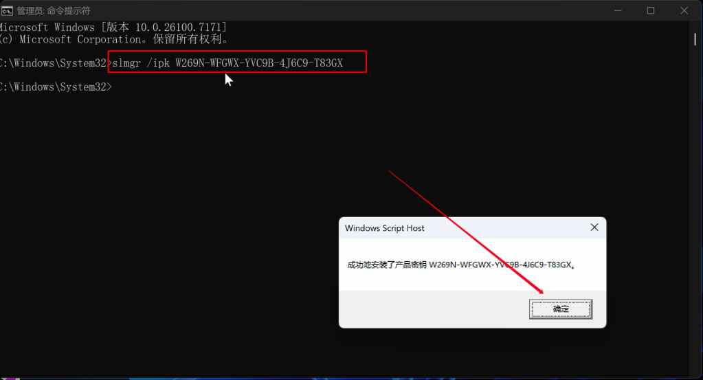 slmgr /ipk W269N-WFGWX-YVC9B-4J6C9-T83GX slmgr /skms kms.cangshui.net #kms.cangshui.net地址 slmgr /ato